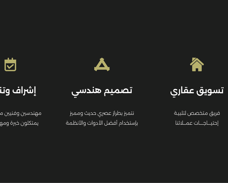 نحن نؤمن بأهمية الابتكار والجودة في كل مشروع نقـوم به، ونسعــى دائمـــاً لتلبيــة احتياجات عملائنا مـــن خــلال تقـــديم خــدمـات متمـيزة ومشاريع تلبي تطلعاتهـم.